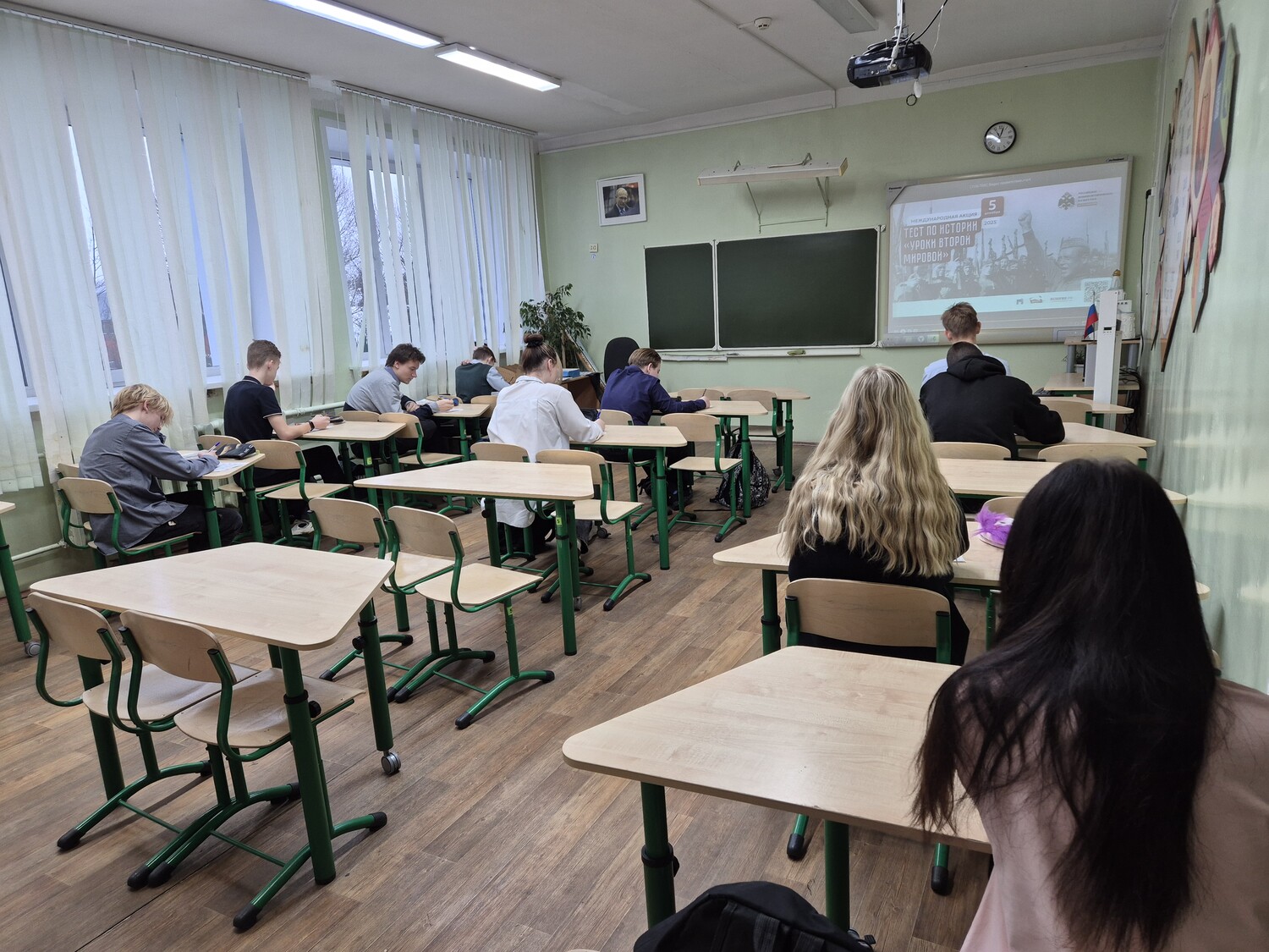 5 декабря 2025 года более 60 старшеклассников и учителей нашей школы в десятый раз приняли участие в Международной акции «Тест по истории «Уроки Второй мировой». Инициаторами и организаторами акции являются Молодежные парламенты России совместно с Российским военно-историческим обществом.